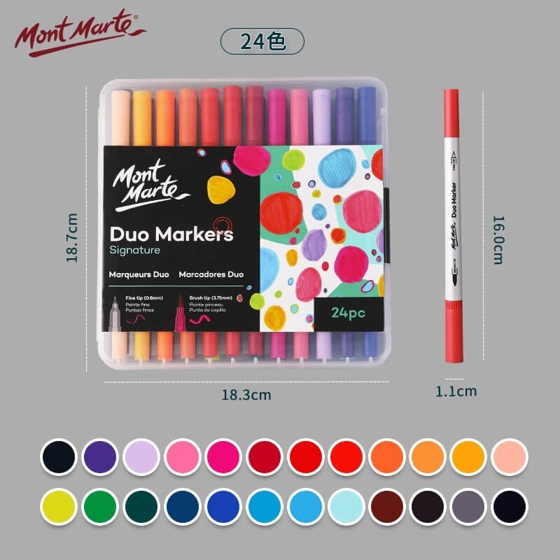 These Signature Duo Markers come in 24 great colours. The fine tip creates beautiful crisp and clean lines while the brush tip is for smooth even colour. A must for any artist creating drawings, technical work or illustrations. They can also be used for colouring small detailed areas.
