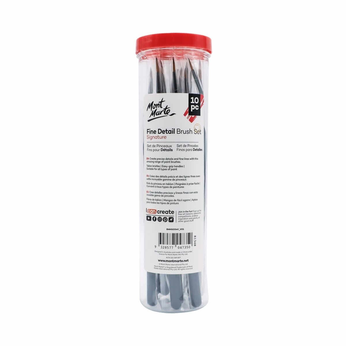 If you're looking to work in some fine lines and detail into your next masterpiece, our Fine Detail Brush Set 10pc is up for the job! Each brush features sturdy taklon bristles and an easy-grip handle to give you more control and comfort during those longer creative sessions. Plus, these versatile brushes suit all kinds of paint, including acrylic, oil, watercolor, and gouache. These fine detail paint brushes also come in their handy storage container, so you can keep them organized in your creative space or while you’re on the go.