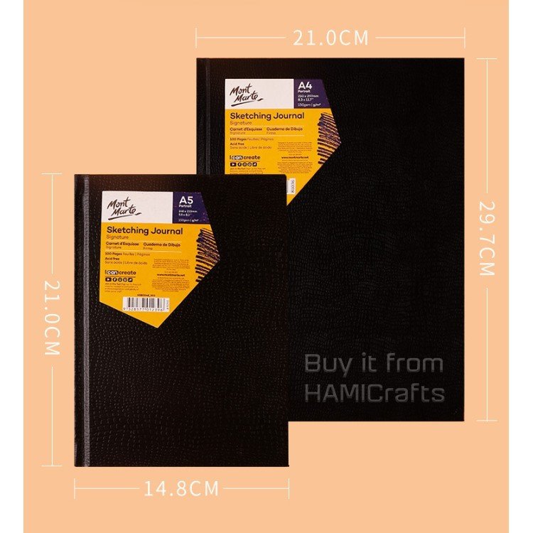 Mont Marte Signature Sketching Journals are an essential for artists of all levels and are available in a variety of shapes and orientations (portrait and landscape). They feature a classic, crocodile look cover and hand-bound blank pages in a luxurious Ivory tone. The hardcover protects the pages inside making it the ideal travel journal or for recording your adventures in everyday life. The 150gsm acid free paper features a subtle uniform texture that is suitable for pen, pencil, graphite, charcoal, pastels and light washes.