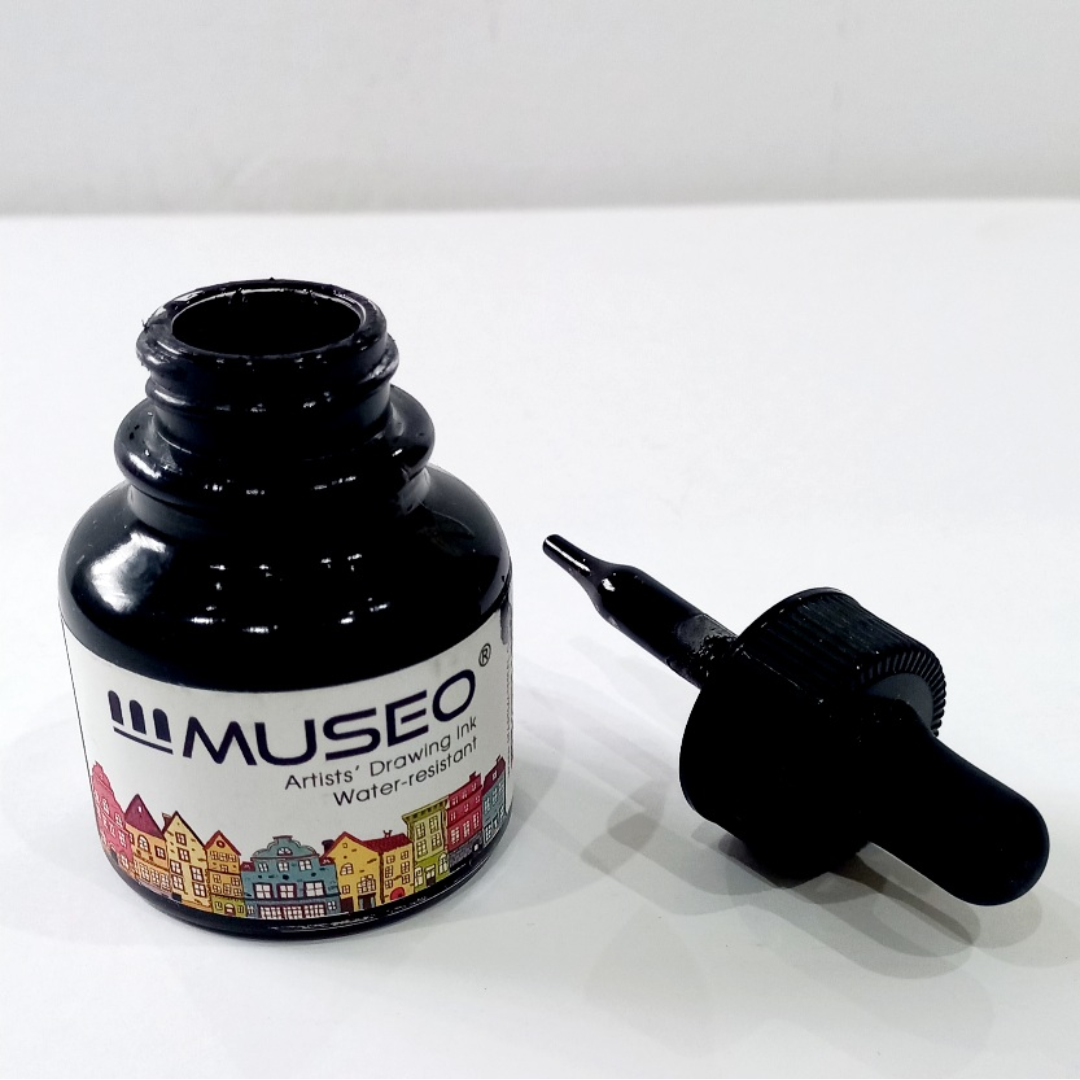 MUSEO drawing ink, which does not allow waterproofing. Mix colors from water-soluble dyes to get many bright colors. For precise line work and other work with software regulations or airbrushes, shake well before use.