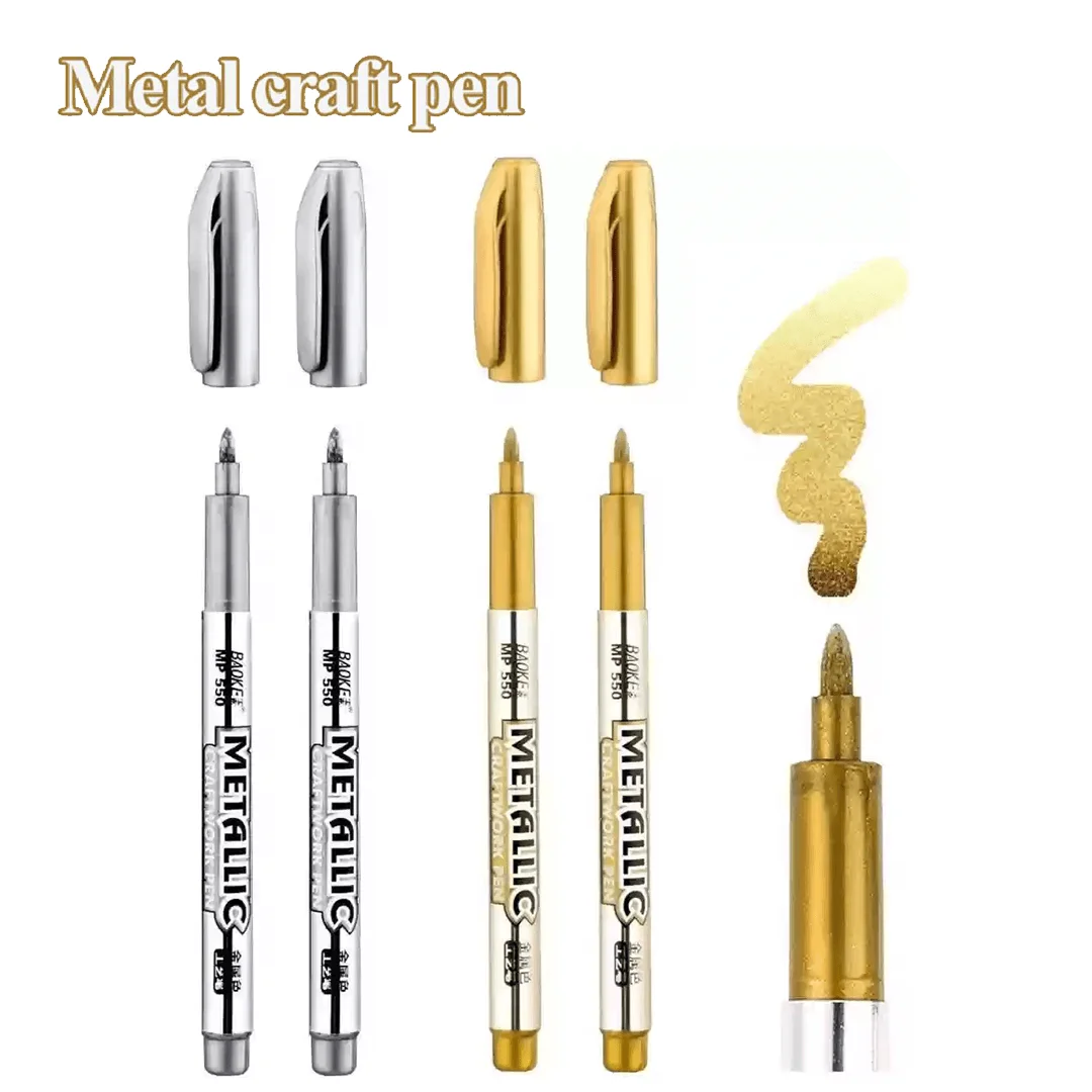 Waterproof Metallic Permanent Paint Marker Pens Gold For Drawing Students, Paper, Cloth, Leather, Plastic, Glass, Ceramic, and CD materials such as writing, painting, etc. High Quality, Non-Toxic, Quick-Drying, Colorful And Shiny. Applicable People: Artists, Art Lovers, Students, Children, etc.