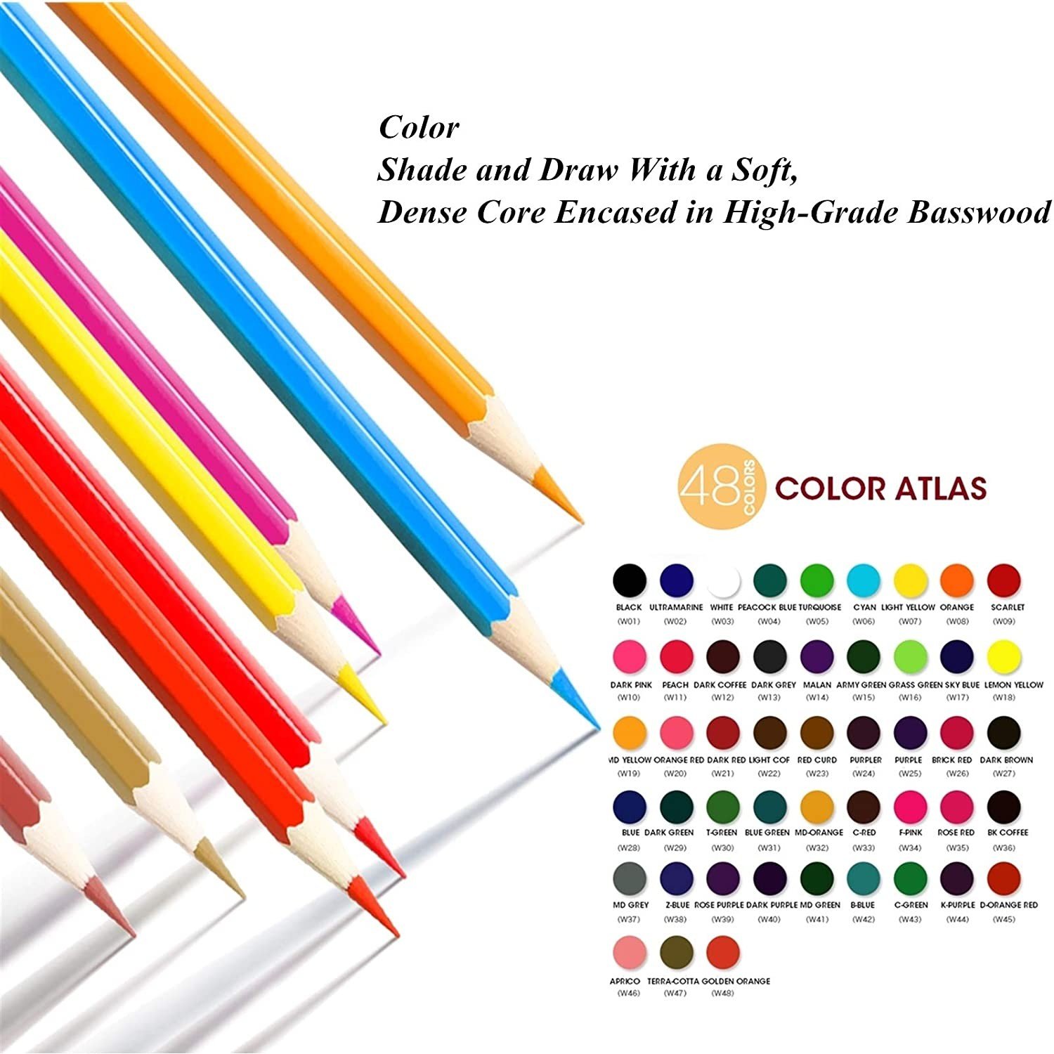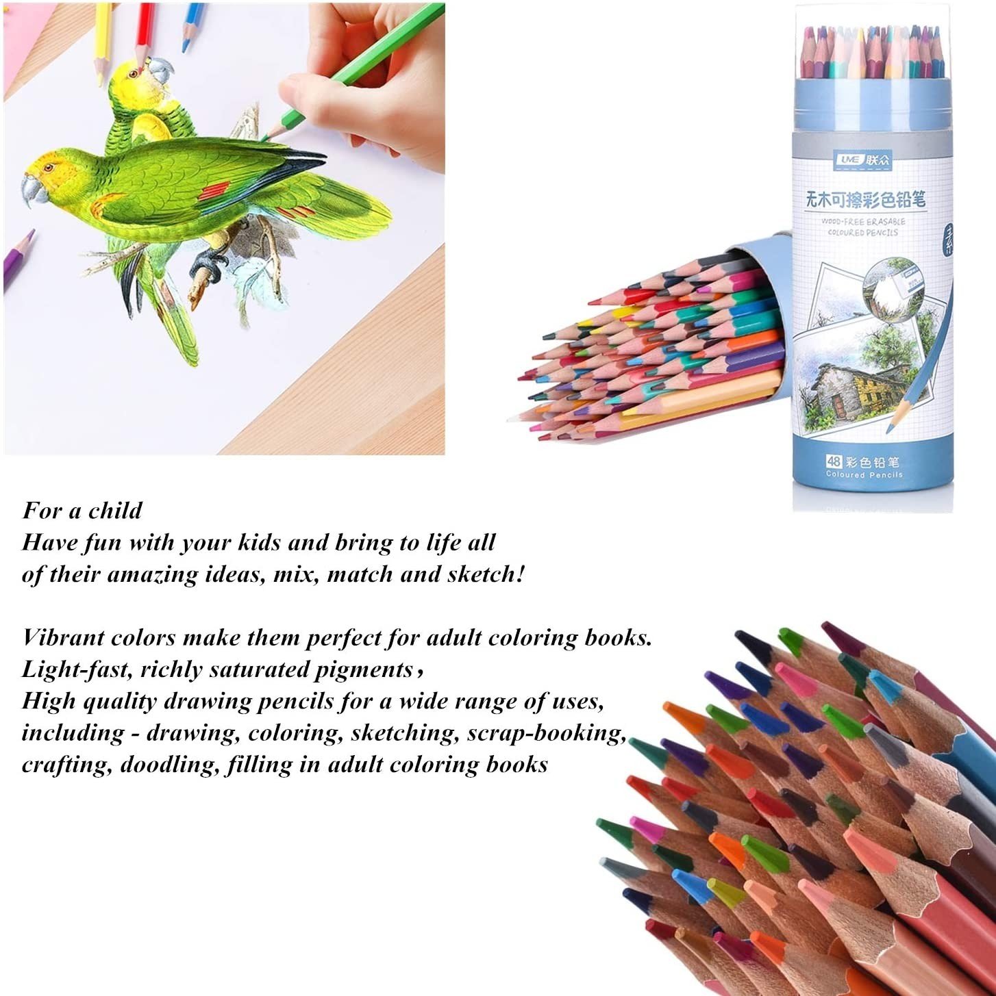 Professional Wood Free Erasable Color Pencils, HB Colored Pencils, Bright Colored Pens for Adult, for Drawing, Sketching, Shading and Coloring 48pcs Pack