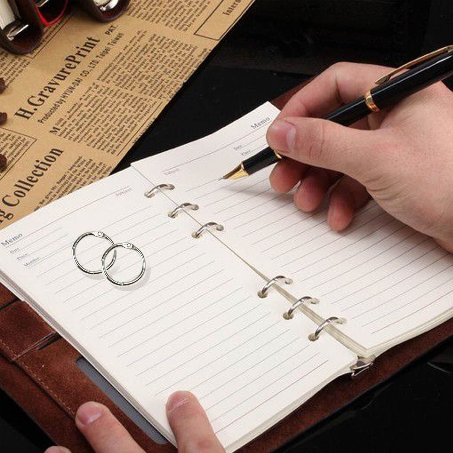 Easily link numerous loose-leaf booklets, paper cards, name tags, key rings, instruction guides or plastic plates together.