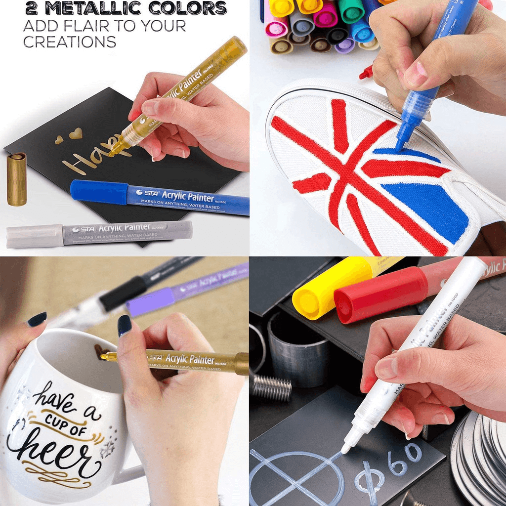 STA Acrylic Paint Marker Pens 24 Colors Art Permanent Markers for DIY Glass, Ceramic, Rock, Wood, Canvas, Metal, Fabric,
