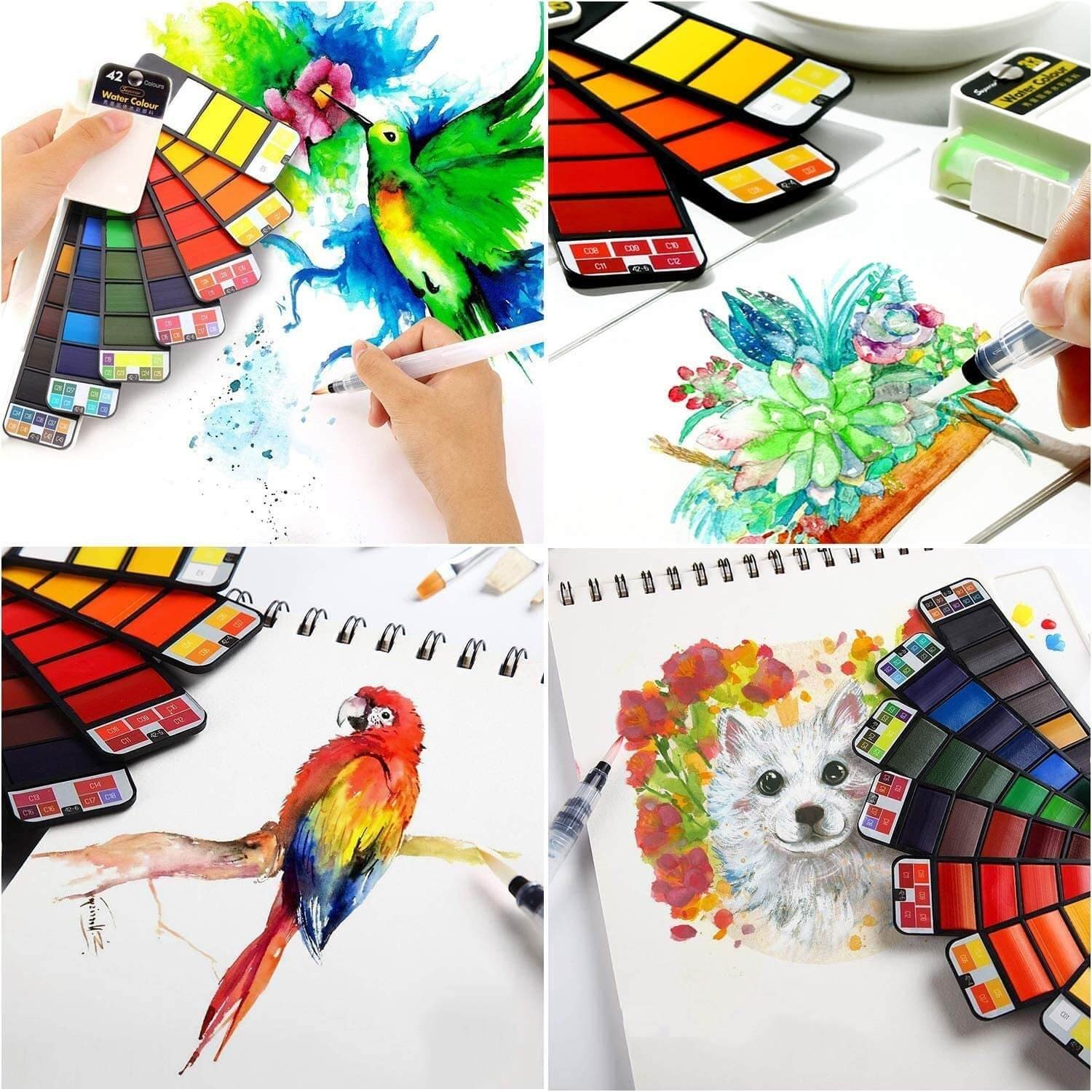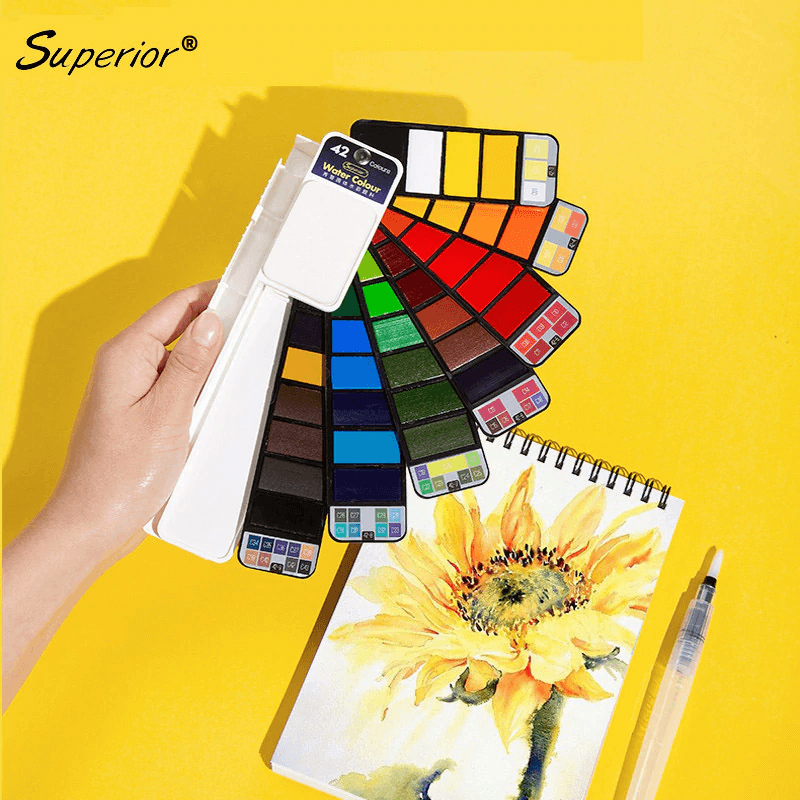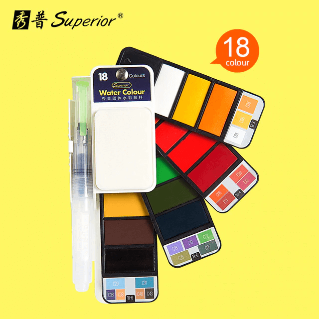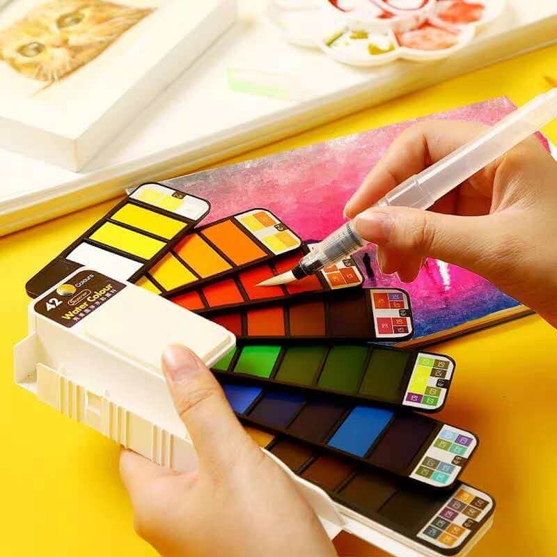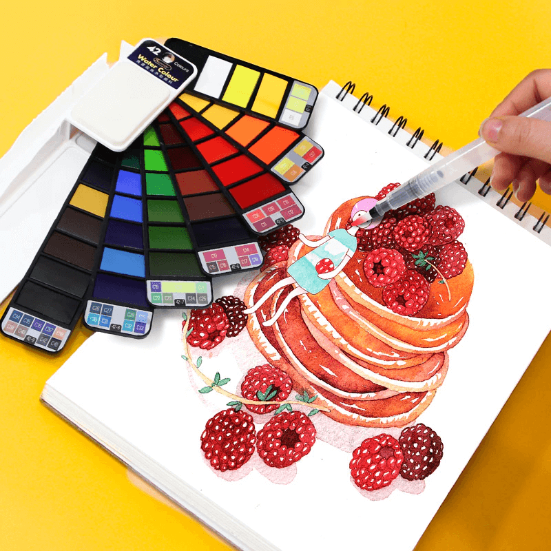 FOLDABLE AND PRACTICAL: Come with 18, 25, 33, 42 vibrant watercolor cakes, 1 round tip water brush pen with brush holder, 1 detachable sponge, 1 mixing paint palette. Help for your imagination comes true.