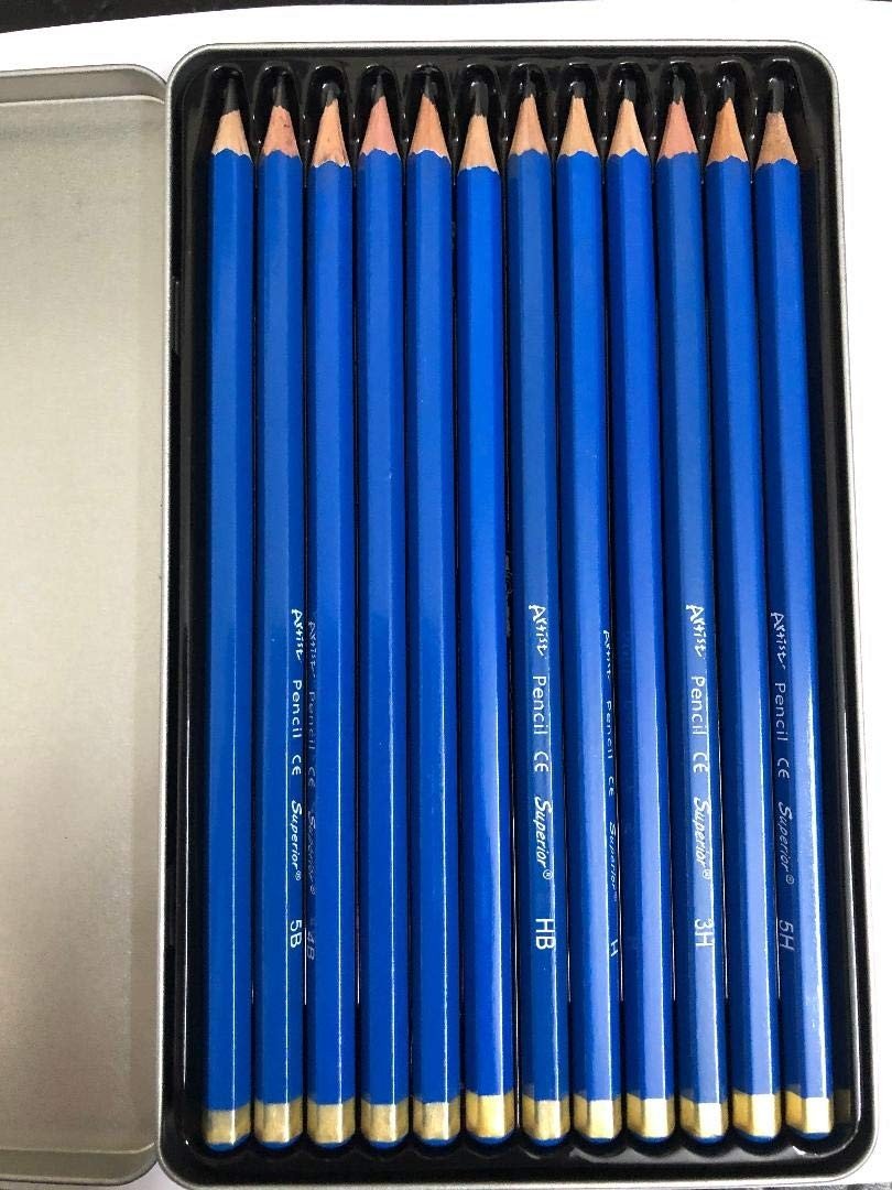 12 Sketching drawing pencils for artists kit include every color you need: 6H, 4H, 2H, HB, B 2B, 3B, 4B, 5B, 6B, 8B, 10B