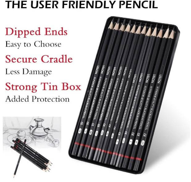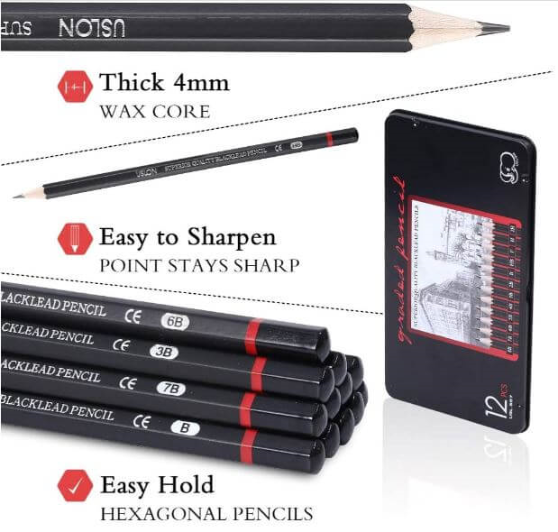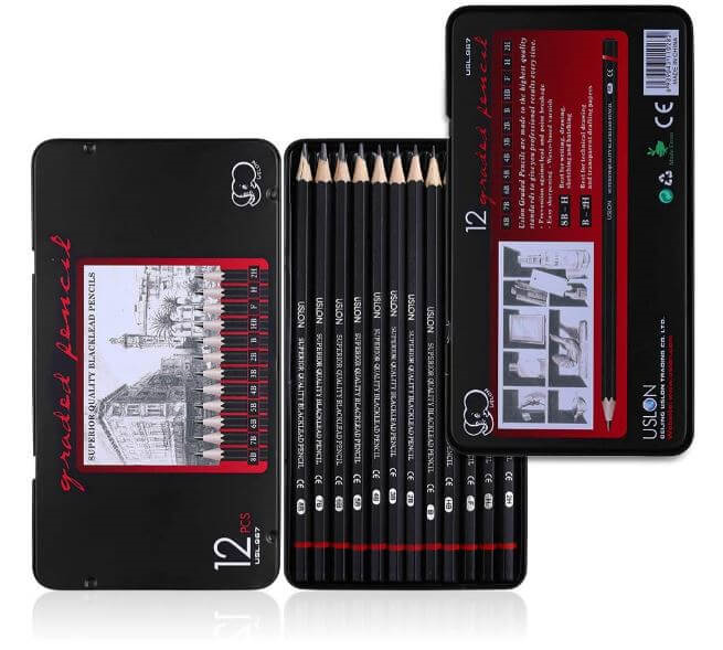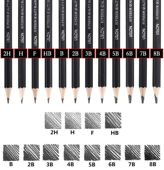 Includes 12 pencils: 8B, 7B, 6B, 5B, 4B, 3B, 2B, B, HB, F, H, 2H. Satisfy your needs.