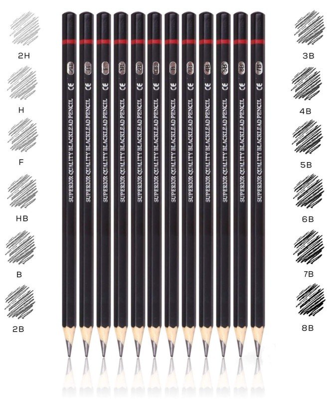 Includes 12 pencils: 8B, 7B, 6B, 5B, 4B, 3B, 2B, B, HB, F, H, 2H. Satisfy your needs.
