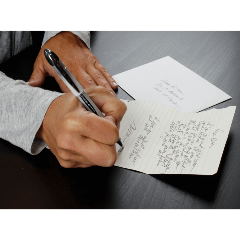 The uni-ball Vision Elite pen Airplane Safe’ technology prevents leaks created by pressure changes in aircraft, making it perfect for the frequent traveler. The comfort grip pen writes with uni Super Ink, which is fade-resistant, water-resistant, and tamper-proof.