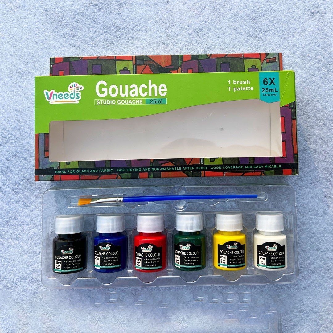 Package includes 6 different color Gouache paints, 1 brush and 1 palette, can meet your basic painting needs
