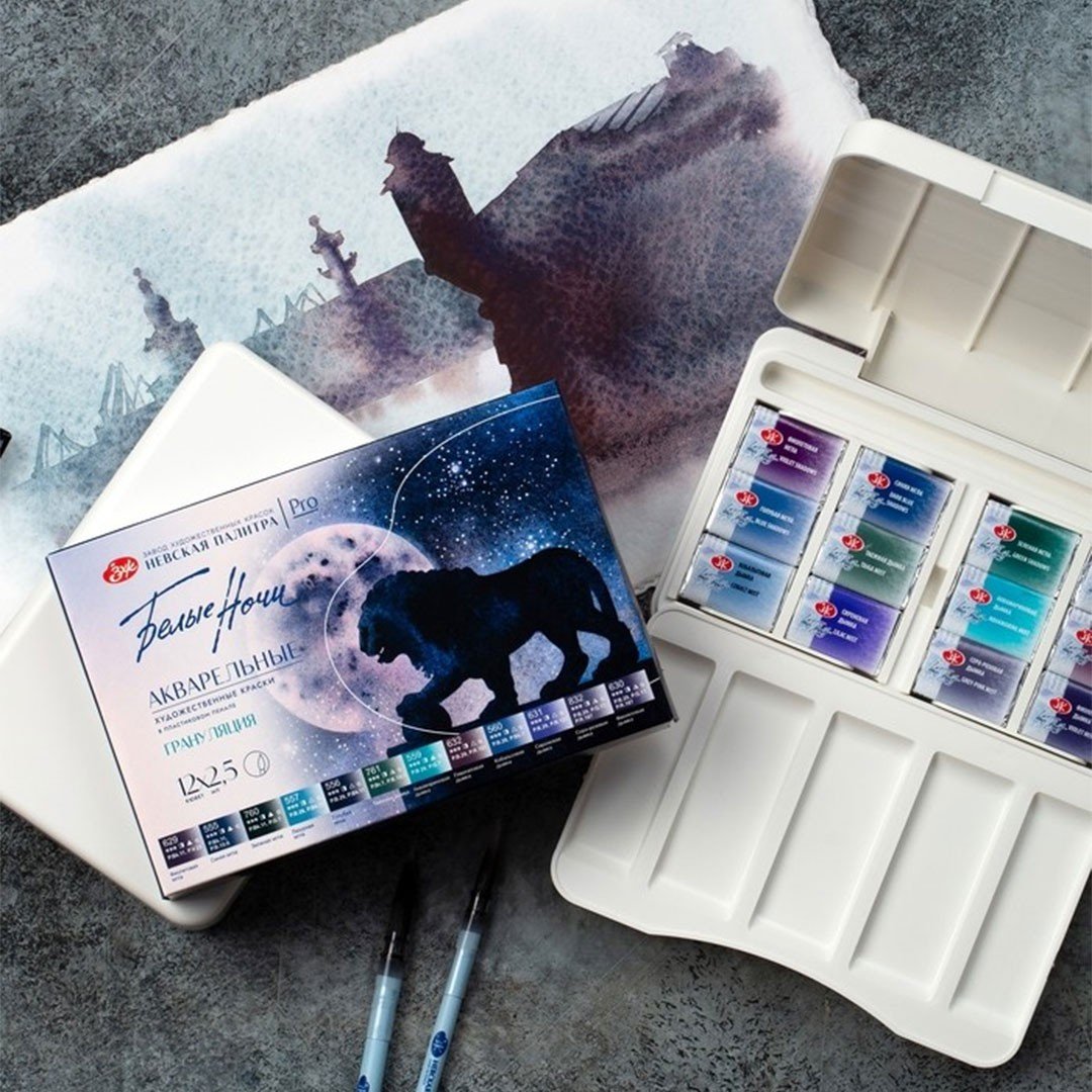 White Nights Granulation paints consist of two to three pigments that have different particle sizes and specific gravity. These colours fascinate by the movement of pigments in water.