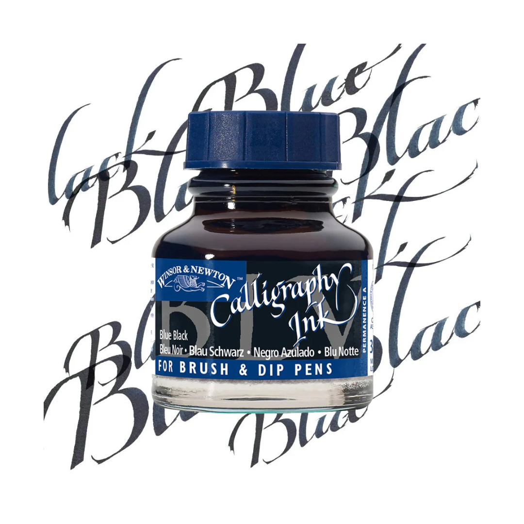Calligraphy is a noble, old art-form and we were determined to do it justice - these inks are made in 18 lightfast colours with carefully chosen pigments to ensure colour brilliance. The 14 blue-capped bottles contain thinner, more transparent inks with a satin finish. They're suitable for dip-pens, fountain pens, technical pens and airbrushes. Our four red-capped bottles are opaque and should be used with a dip-pen or brush. Winsor & Newton Calligraphy Inks have a permanence rating of AA or A but are not waterproof.