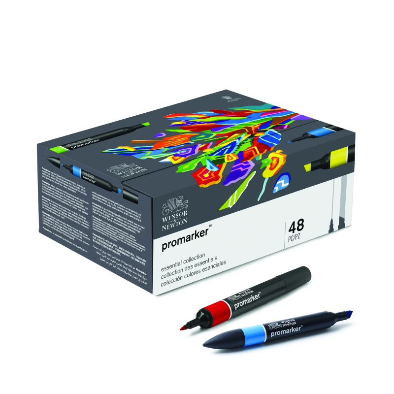 48 essential colours from the ever popular ProMarker pen range from Winsor & Newton.Contained in an attractive integrated storage box with a magnetic closure.