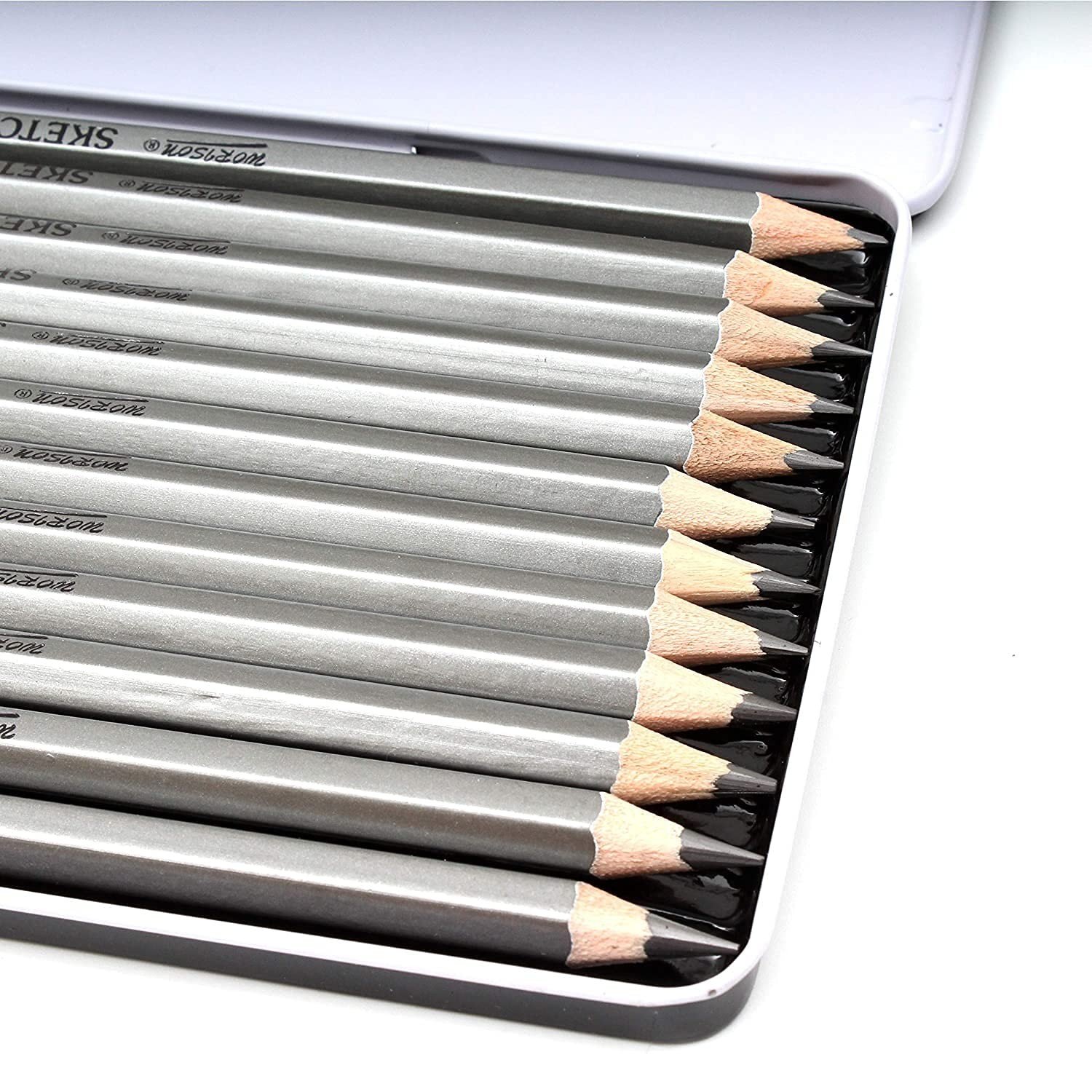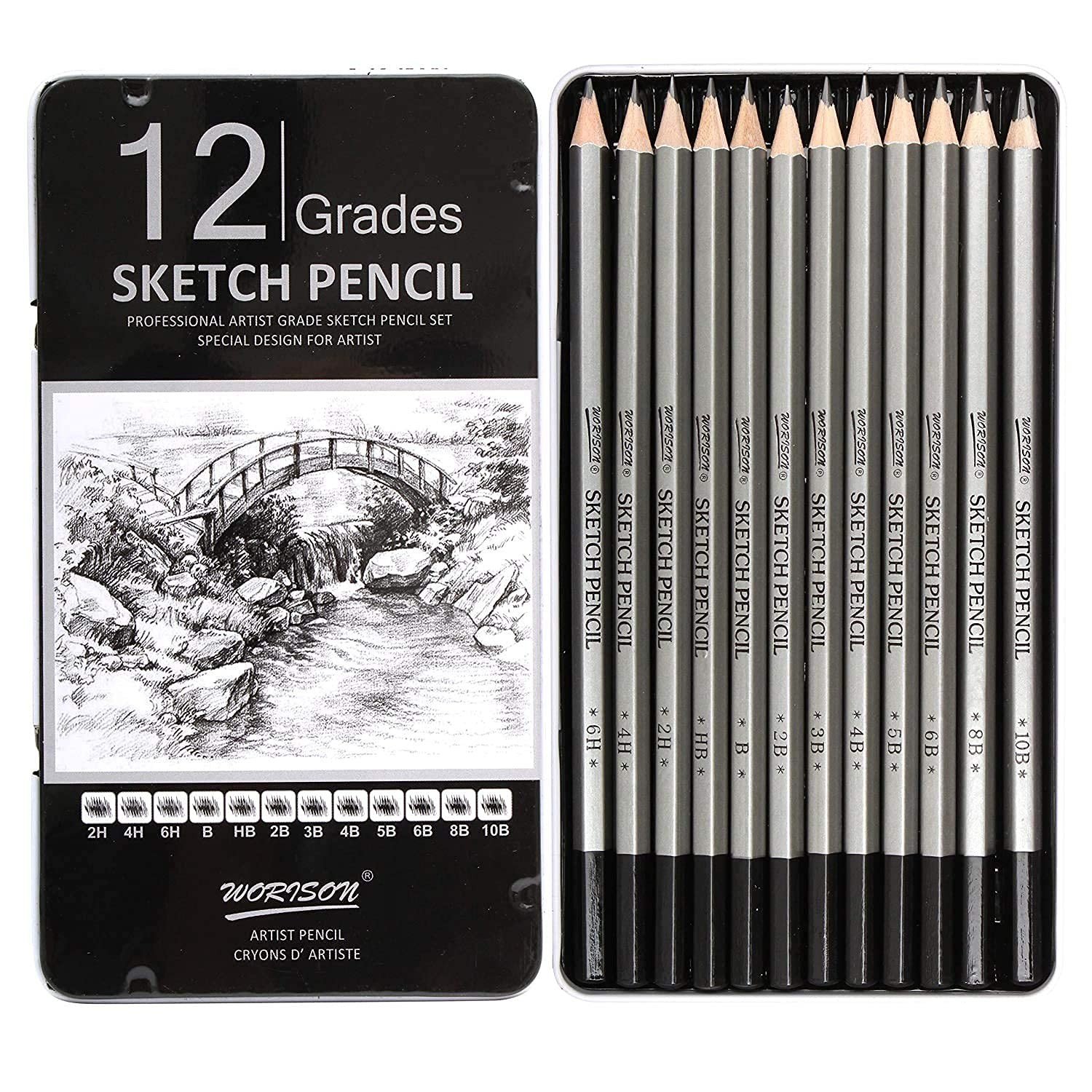 A wide variety of hardness for all your artwork needs. Includes 12 pre sharpened professional quality graphite pencils (6H, 4H, 2H, HB, B, 2B, 3B, 4B, 5B, 6B, 8B, 10B)