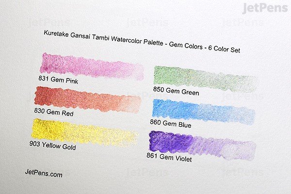 Gansai Tambi Gem colors is a set of glittering metallic in the series. By dissolving it with a small amount of water, it can be beautifully colored even on dark paper.